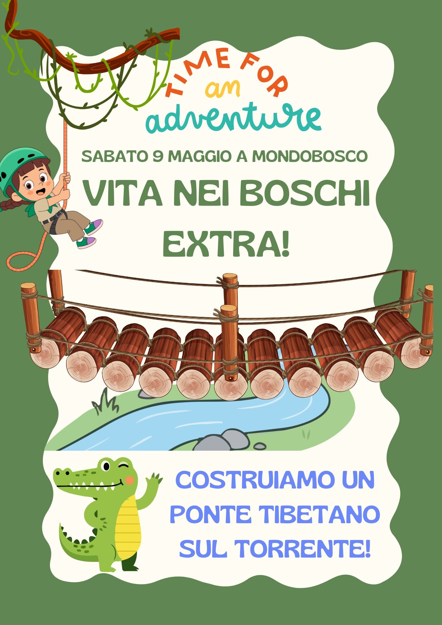 Visto il successo delle quattro giornate di VITA NEI BOSCHI con Jacopo, guida ambientale, abbiamo pensato di aggiungere una giornata extra, sabato 9 maggio, per chiudere alla grande questo ciclo di avventure nel bosco. Sarà un’occasione per chi ha perso una delle 4 giornate, per recuperare le attività che non ha potuto svolgere e per ottenere il quarto timbro (valido per la maglietta di Scotty in omaggio) ma anche per chi è stato presente a tutte e quattro le giornate e ne vorrebbe tanto una quinta!!! Eccola 🙂 Per l’occasione abbiamo pensato ad un programma speciale: così dopo aver costruito capanne, imparato nodi, osservato le impronte degli animali del bosco ed esplorato sentieri, dopo esserci infangati nelle pozze d’acqua piene di girini e aver fatto calchi di gesso delle orme di tassi e cinghiali, ora costruiremo un ponte tibetano usando i nodi che abbiamo imparato, le corde e la destrezza nel muoverci tra le pietre, i rami e le acque del torrente che attraverseremo sul nostro ponte tibetano autoprodotto!